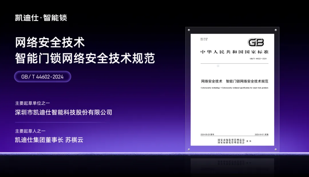凱迪仕參與制定 “智能鎖行業最新國家標準”,為行業樹立標桿典范!